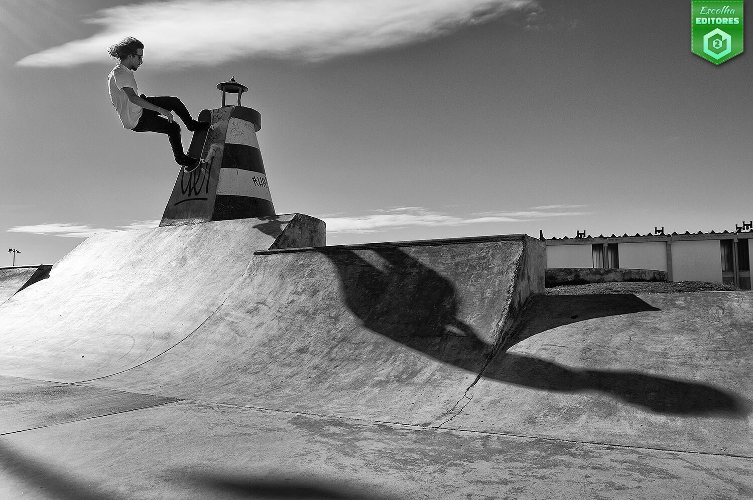 Em terceiro lugar temos Bruno Castro Progmet com uma fotografia de desporto onde um skater, congelado num instante do movimento, parece desafiar a gravidade ao projetar-se sobre uma rampa de betão. Há uma tensão latente entre o impulso do corpo e a rigidez do espaço urbano, como se o gesto fosse uma tentativa de libertação. A sombra alongada no chão prolonga esse movimento, criando uma duplicação que reforça a ideia de movimento e energia. O preto e branco intensifica o dramatismo, eliminando distrações e focando o olhar nas formas, nas linhas e no contraste. O céu amplo e quase vazio acentua a sensação de isolamento, transformando o ato físico num momento contemplativo — um diálogo entre o corpo e o espaço, entre o instante e a permanência. A fotografia do Bruno conquistou 44 estrelas. Parabéns, Bruno!