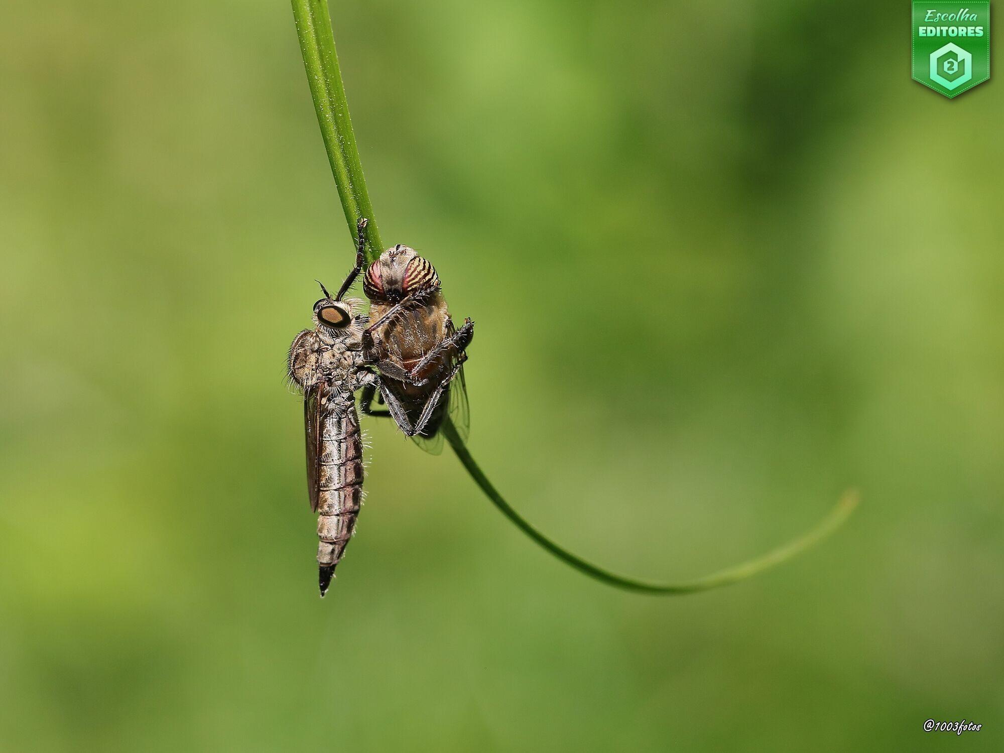 Em terceiro lugar temos José Silva, com um fotografia que revela um momento de natureza pura e crua congelado no tempo com uma nitidez quase cirúrgica: a inevitável cadeia alimentar no seu pleno funcionamento. Uma fotografia que é uma afirmação estética da beleza escondida no mundo dos insetos, onde a vida e a morte coexistem em perfeita harmonia visual. A fotografia do José recebeu 54 estrelas. Parabéns, José!