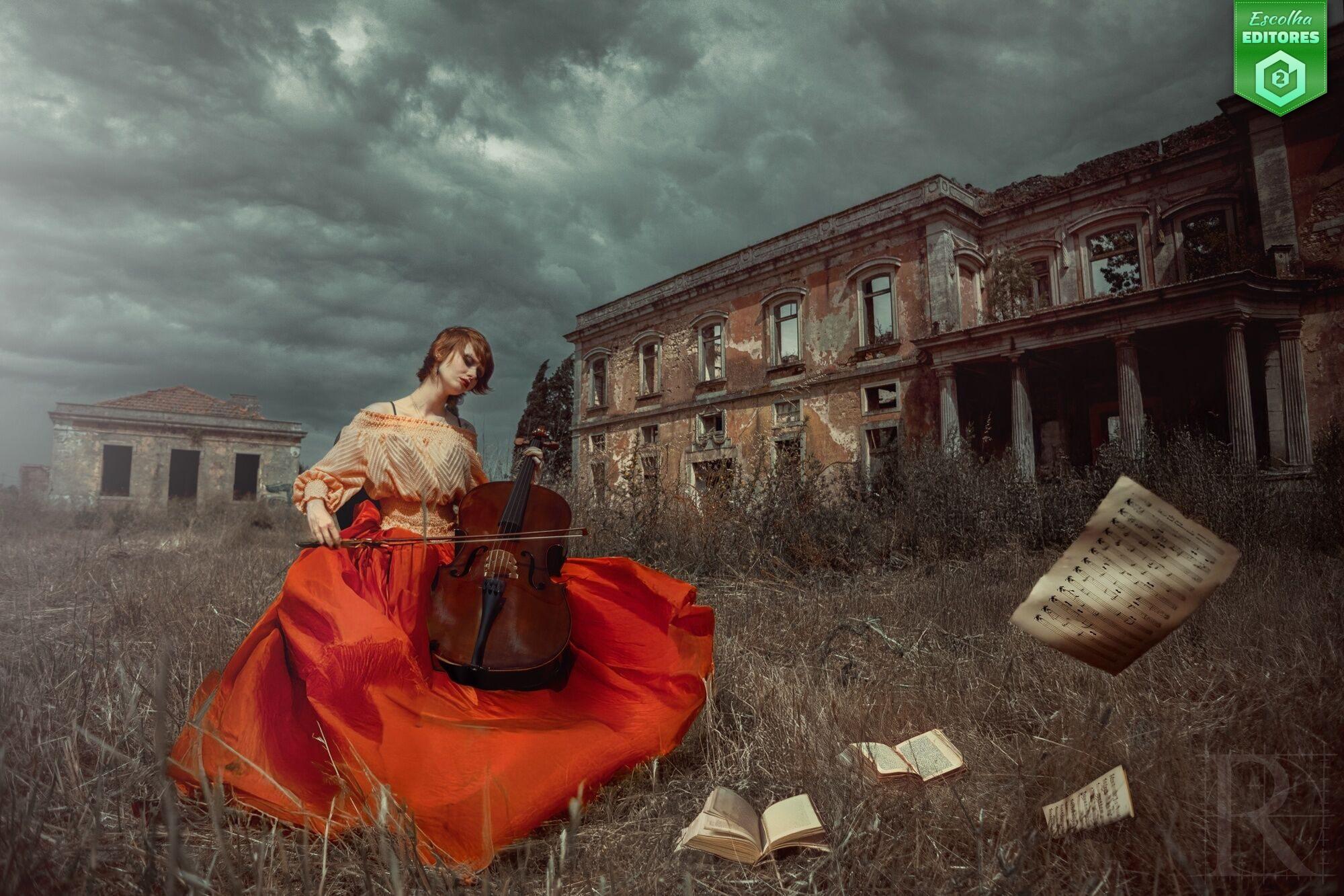 Em terceiro lugar temos RicardoGoncalves com uma fotografia capturada sob um céu pesado onde uma figura feminina surge com um vestido vermelho que parece ecoar a força da arte no meio da decadência de um cenário marcado por várias fachadas em ruínas. As partituras soltas que esvoaçam ao vento completam a cena, simbolizando a fragilidade da memória e da criação humana. A composição da fotografia equilibra de forma perfeita a monumentalidade da ruína com a delicadeza da modelo, e a saturação controlada dos tons vermelhos cria um ponto focal poderoso, acentuando o drama. A fotografia do Ricardo recebeu 27 estrelas. Parabéns, Ricardo!