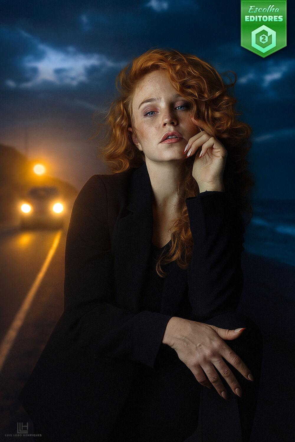 Em segundo lugar ficou Luís Lobo Henriques com um retrato de uma mulher que parece surgir como uma chama viva contra o cenário noturno. No fundo, surgem uns faróis difusos de um carro, sugerindo movimento e transitoriedade, enquanto que a pose da modelo transmite pausa, introspeção e magnetismo. O rosto e as mãos da modelo parecem esculpidas pela luz, destacando-se a textura da pele e o brilho dos cabelos. A intensidade da cena acaba por atingir o seu apogeu pelo um uso muito inteligente de contraste entre tons frios e tons quentes. O fundo foi perfeitamente desfocado, mantendo a modelo como ponto central de tensão e estética. A imagem do Luís conquistou também 36 estrelas. Parabéns, Luís!