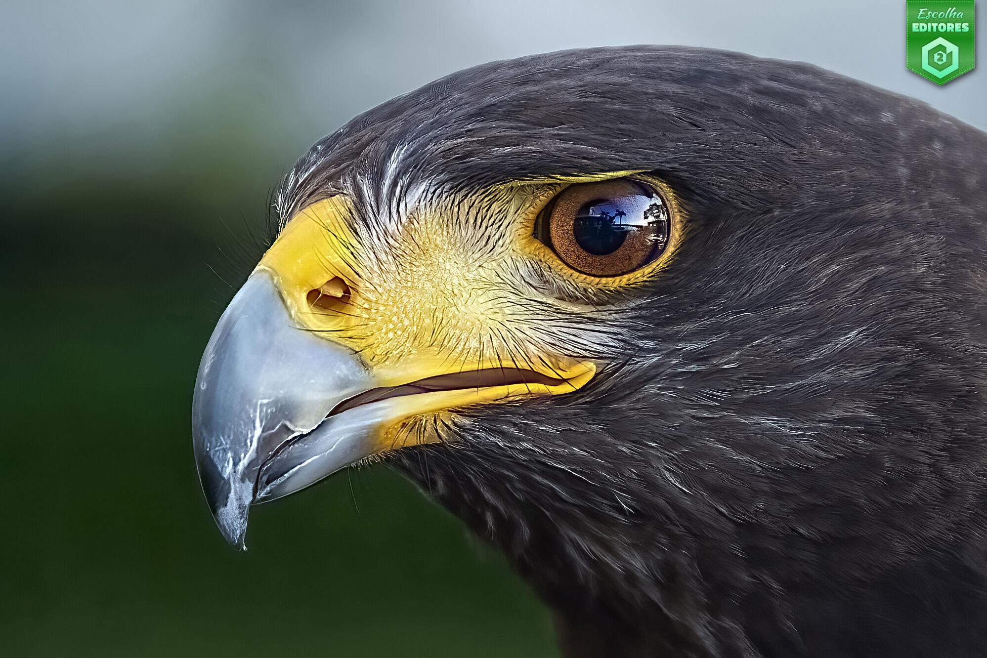 Em terceiro lugar temos Ron Haslam, com um fotografia de um plano fechadíssimo da cabeça de uma águia, onde os detalhes são impressionantemente nítidos. Não é apenas um retrato técnico: é um símbolo de vigilância, foco e poder. O reflexo no olho da ave insinua a presença humana, talvez o fotógrafo, indicando que, por mais que dominemos a técnica, ainda somos observadores da natureza, não seus donos. O olhar da águia parece atravessar a lente, ultrapassando a barreira entre o selvagem e a civilização, lembrando-nos da força instintiva que existe sob toda a racionalidade. A fotografia do Ron recebeu 47 estrelas. Parabéns, Ron!
