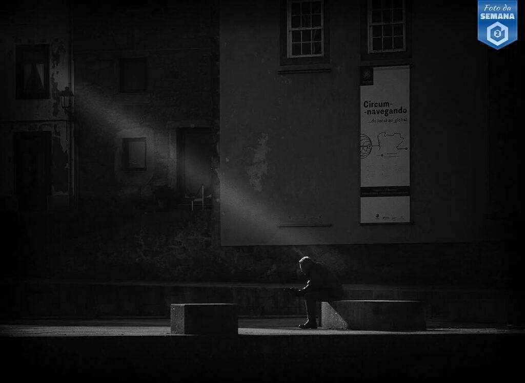 O grande vencedor foi Bruno Castro Progmet com uma fotografia de rua centrada numa figura humana, sentada na penumbra, que é tocada por um único raio de luz. A composição, centrada no feixe de luz diagonal, transforma o espaço urbano num cenário de meditação. A luz natural parece teatral, recortando o corpo curvado contra o fundo escuro das fachadas. A técnica evidencia o domínio do contraste — um equilíbrio entre a escuridão envolvente e o brilho controlado sobre o sujeito. O resultado é uma imagem silenciosa, quase espiritual, onde o tempo parece parar para que a solidão se torne visível. É um retrato da humanidade no seu gesto mais simples: existir, em silêncio, sob a luz. A fotografia do Bruno conquistou 63 estrelas. Parabéns, Bruno!