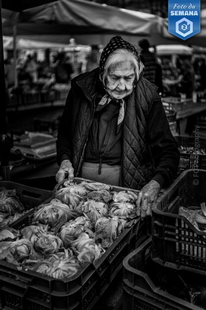 O grande vencedor foi Francisco Carreiro com uma fotografia de uma idosa que se inclina sobre uma caixa cheia de hortaliças como se tratassem das suas próprias memórias, enquanto que a luz se firma no seu rosto marcado, revelando cada detalhe do mesmo. O preto e branco aqui funciona como um regresso à essência — as cores estão ausentes de forma a que apenas a luz e a matéria contem a história: as rugas transformam-se em mapas, as sombras aprofundam o peso do tempo, e os brancos suaves acariciam a textura frágil das hortaliças. A composição vertical conduz o olhar da cabeça, coberta pelo lenço, até às mãos, gastas do tempo, que seguram a caixa com a firmeza de quem já conheceu muitas feiras, muitos invernos, muitas madrugadas. A nitidez concentra-se na figura, enquanto que o fundo se desfaz — uma separação que reforça a solidão digna desta personagem anónima. A técnica, discreta mas magistral, sustenta o sentimento: é uma fotografia que honra o quotidiano. A fotografia do Francisco conquistou 34 estrelas. Parabéns, Francisco!