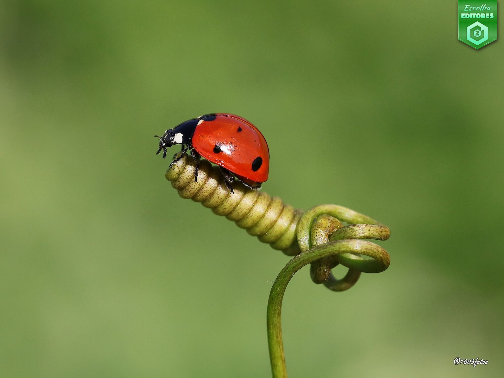 Em segundo lugar temos José Silva com uma fotografia macro de uma joaninha que repousa sobre uma planta em forma de espiral que mais parece uma escultura natural. As cores são simples mas vibrantes: o vermelho intenso do inseto destaca-se contra o verde uniforme do fundo, criando um contraste visual imediato. A profundidade de campo é extremamente curta, focando apenas o essencial — a joaninha e a espiral — enquanto que o fundo se dissolve num gradiente suave. A composição é minimalista, com linhas curvas que conduzem o olhar eficazmente até ao ponto de interesse. A fotografia do José conquistou 41 estrelas. Parabéns, José!