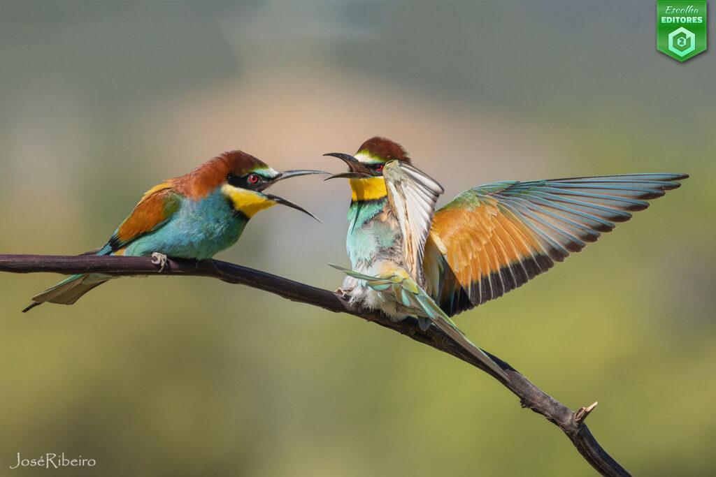 Em segundo lugar ficou José Ribeiro com uma fotografia de vida selvagem onde a beleza explosiva das cores dos dois abelharucos contrasta com a intensidade do momento captado: um diálogo ou talvez um confronto? A nitidez impressionante, aliada à composição dinâmica, reflete não só a harmonia da natureza, mas também a sua complexidade emocional. Um instante fugaz transformado em arte eterna. A imagem do José conquistou 52 estrelas. Parabéns, José!