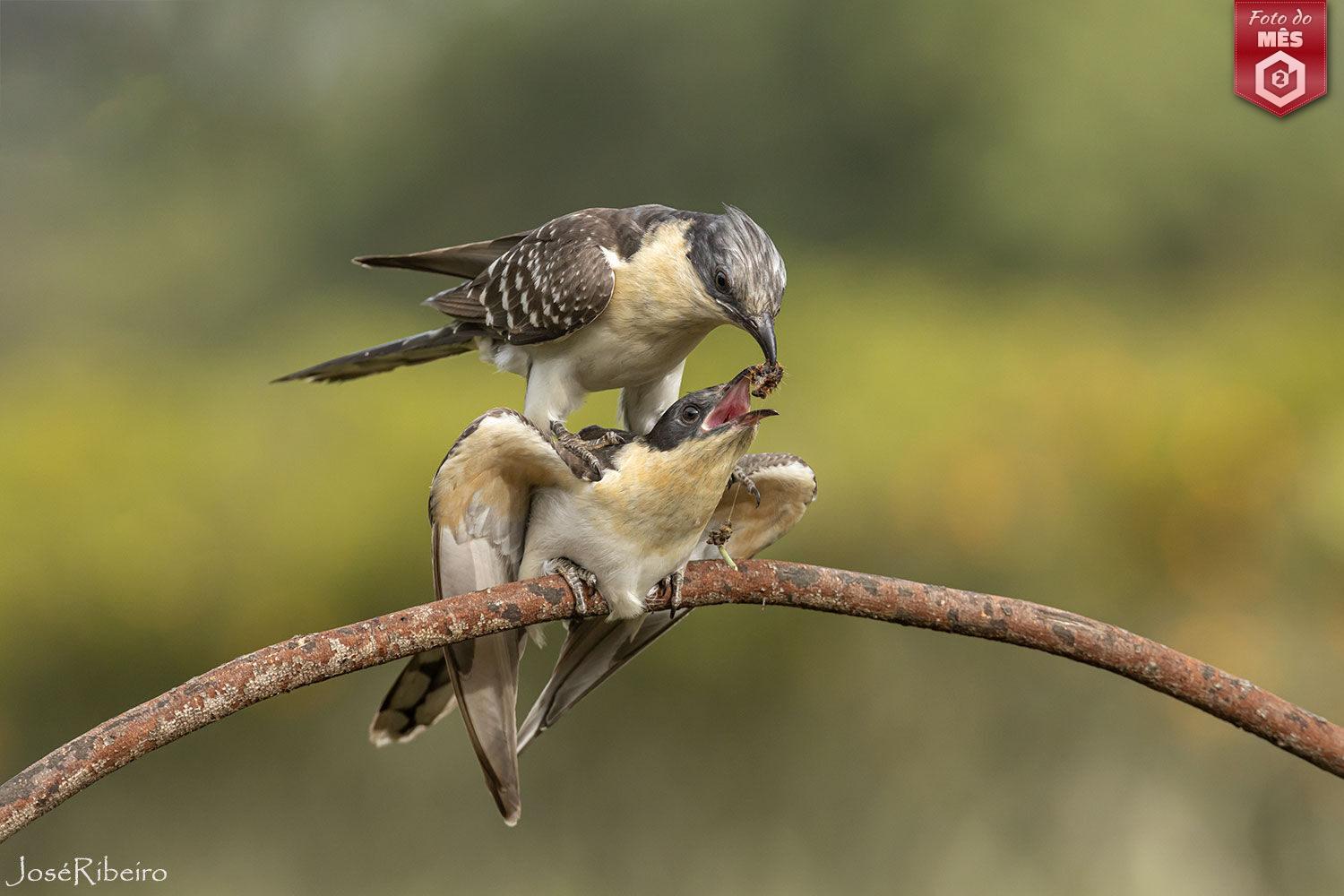 Esta fotografia captura um momento fascinante do ritual de cortejo do cuco-rabilongo. O gesto do macho ao alimentar a fêmea, conhecido como “oferta nupcial”, é uma demonstração de cuidado e provisão, essencial para fortalecer o vínculo entre o casal. A cena transmite não apenas a beleza da interação, mas também a complexidade do comportamento dessas aves. O enquadramento impecável, a nitidez dos detalhes e o fundo suavemente desfocado criam uma composição harmoniosa, destacando a emoção do momento. Um registo extraordinário da magia da vida selvagem!